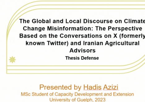 Global and Local Discourse on Climate Change Misinformation: The Perspective Based on the Conversations on X (formerly known Twitter) and Iranian Agricultural Advisor On December 7, 2023, Hadis Azizi successfully defended her thesis. Her research focused on analyzing global conversations on X (formerly Twitter) regarding climate change misinformation related to agricultural development. She then used…